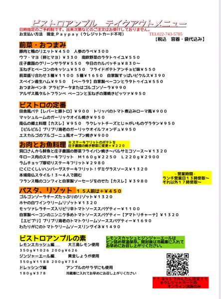 2025年末オードブル 12/31限定 2025-10-23 15:57:38 ビストロアンプルの年末オードヴル限定数あり 3~4人前 15000円税込み12/31水曜お渡し15:00... 続きを見る